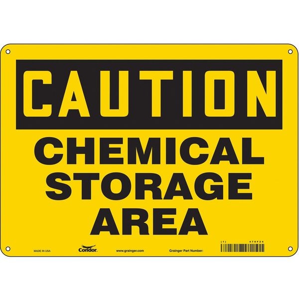 Safety Sign, Horizontal Rectangle, Number of Printed Sides 1, English, Sign Format Traditional OSHA, Sign Legend Chemical Storage Area, Sign Legend Background Color Yellow, Sign Legend Style Text