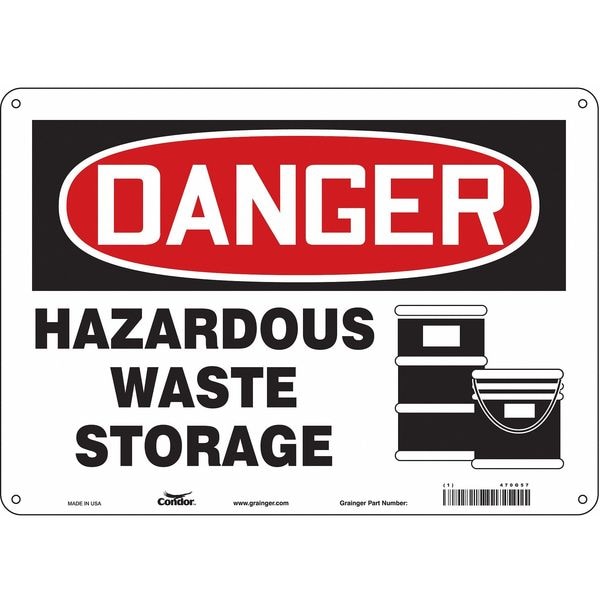 Safety Sign, Horizontal Rectangle, Number of Printed Sides 1, English, Sign Format Traditional OSHA, Sign Legend Hazardous Waste Storage, Sign Legend Background Color White, Sign Legend Style Symbol and Text