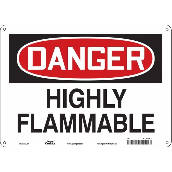 Safety Sign, Horizontal Rectangle, Number of Printed Sides 1, English, Sign Format Traditional OSHA, Sign Legend Highly Flammable, Sign Legend Background Color White, Sign Legend Style Text