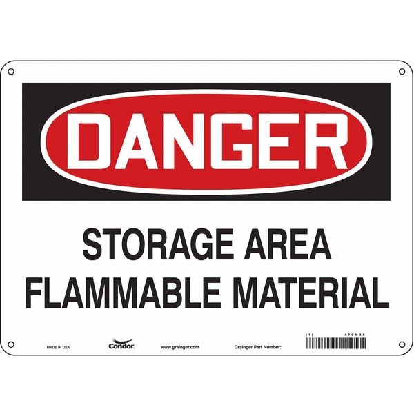 Safety Sign, Horizontal Rectangle, Number of Printed Sides 1, English, Sign Format Traditional OSHA, Sign Legend Storage Area Flammable Material, Sign Legend Background Color White, Sign Legend Style Text
