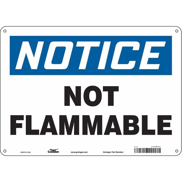 Safety Sign, Horizontal Rectangle, Number of Printed Sides 1, English, Sign Format Traditional OSHA, Sign Legend Not Flammable, Sign Legend Background Color White, Sign Legend Style Text