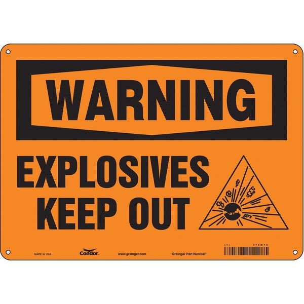 Safety Sign, Horizontal Rectangle, Number of Printed Sides 1, English, Sign Format Traditional OSHA, Sign Legend Explosives Keep Out, Sign Legend Background Color Orange, Sign Legend Style Symbol and Text