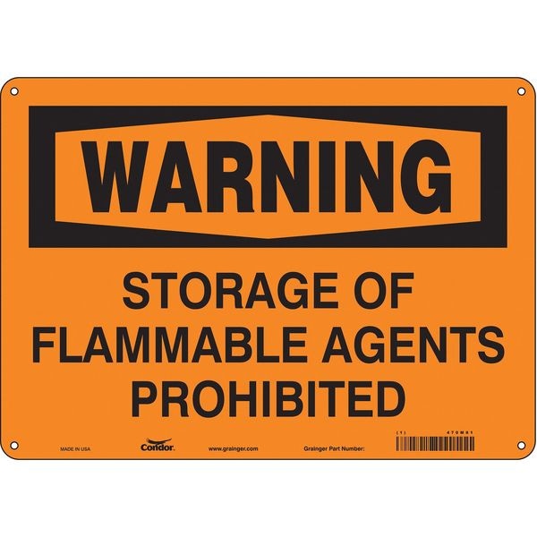 Safety Sign, Horizontal Rectangle, Number of Printed Sides 1, English, Sign Format Traditional OSHA, Sign Legend Storage Or Flammable Agents Prohibited, Sign Legend Background Color Orange, Sign Legend Style Text