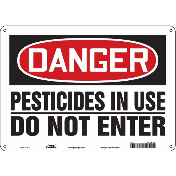 Safety Sign, Horizontal Rectangle, Number of Printed Sides 1, English, Sign Format Traditional OSHA, Sign Legend Pesticides In Use Do Not Enter, Sign Legend Background Color White, Sign Legend Style Text