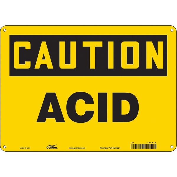 Safety Sign, Horizontal Rectangle, Number of Printed Sides 1, English, Sign Format Traditional OSHA, Sign Legend Acid, Sign Legend Background Color Yellow, Sign Legend Style Text