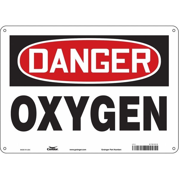 Safety Sign, Horizontal Rectangle, Number of Printed Sides 1, English, Sign Format Traditional OSHA, Sign Legend Oxygen, Sign Legend Background Color White, Sign Legend Style Text