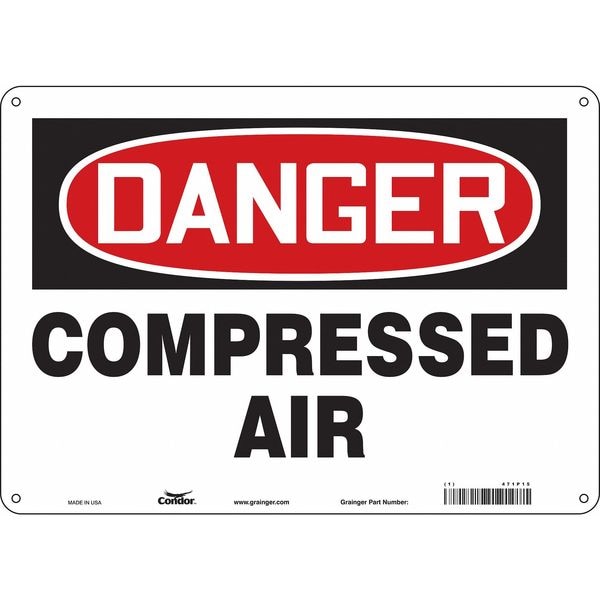 Safety Sign, Horizontal Rectangle, Number of Printed Sides 1, English, Sign Format Traditional OSHA, Sign Legend Compressed Air, Sign Legend Background Color White, Sign Legend Style Text