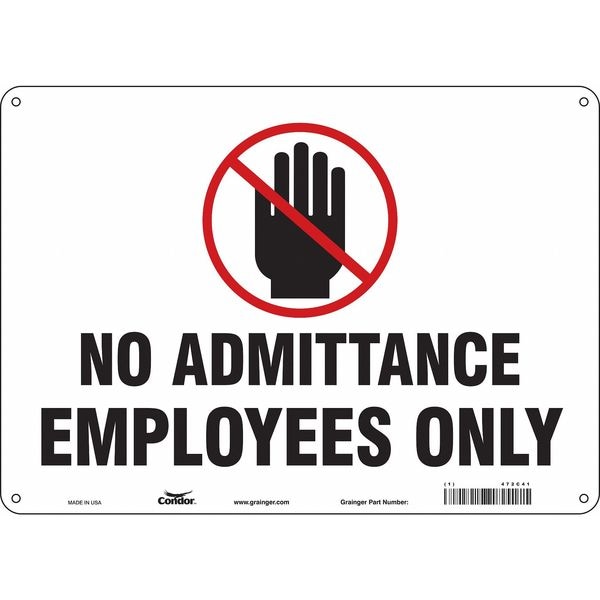 Safety Sign, Horizontal Rectangle, Number of Printed Sides 1, English, Sign Format Other Format, Sign Legend No Admittance Employees Only, Sign Legend Background Color White, Sign Legend Style Symbol and Text