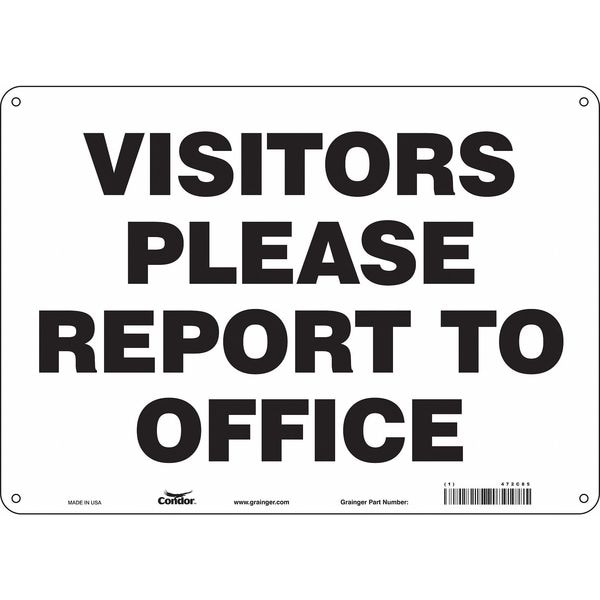 Safety Sign, Horizontal Rectangle, Number of Printed Sides 1, English, Sign Format Other Format, Sign Legend Visitors Please Report To Office, Sign Legend Background Color White, Sign Legend Style Text