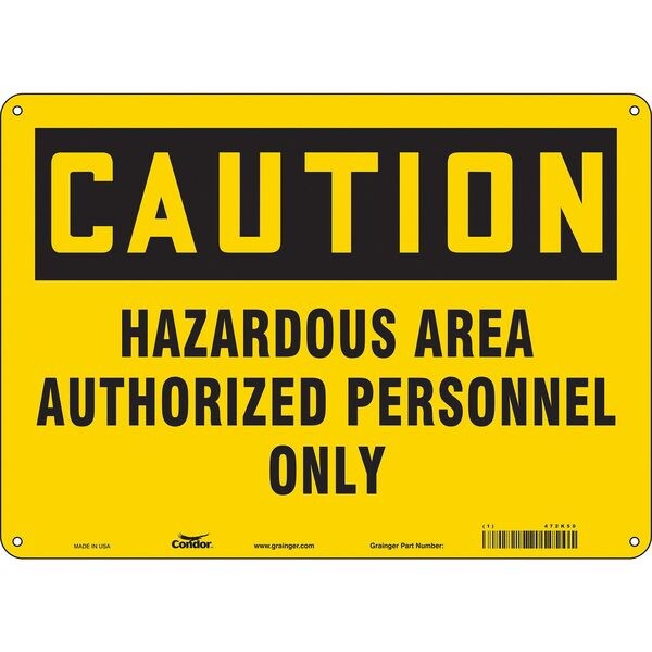 Safety Sign, Horizontal Rectangle, Number of Printed Sides 1, English, Sign Format Traditional OSHA, Sign Legend Hazardous Area Authorized Personnel Only, Sign Legend Background Color Yellow, Sign Legend Style Text