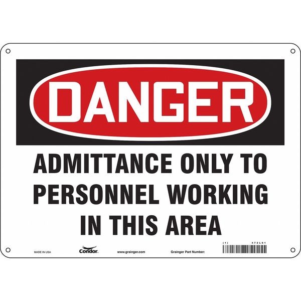 Safety Sign, Horizontal Rectangle, Number of Printed Sides 1, English, Sign Format Traditional OSHA, Sign Legend Admittance Only To Personnel Working In This Area, Sign Legend Background Color White, Sign Legend Style Text