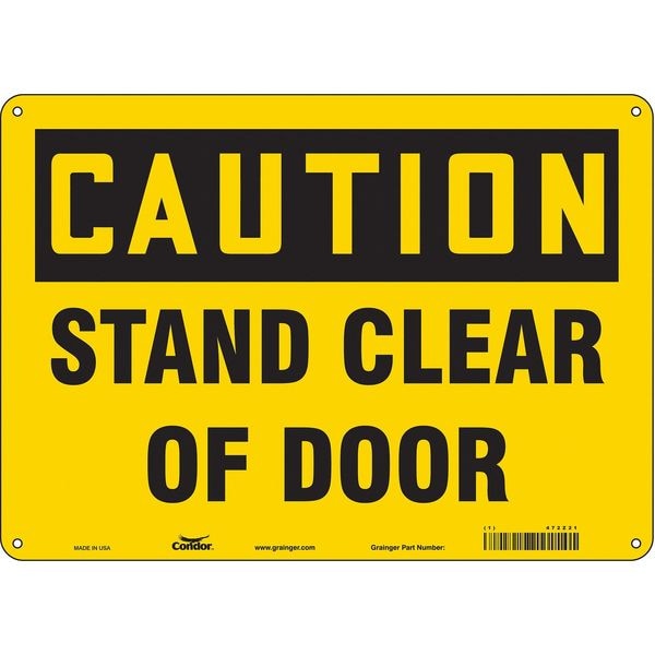 Safety Sign, Horizontal Rectangle, Number of Printed Sides 1, English, Sign Format Traditional OSHA, Sign Legend Stand Clear Of Door, Sign Legend Background Color Yellow, Sign Legend Style Text