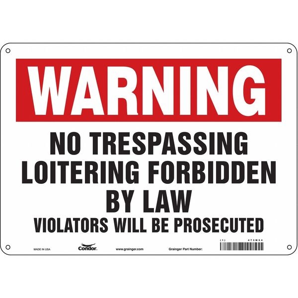Safety Sign, Horizontal Rectangle, Number of Printed Sides 1, English, Sign Legend No Trespassing Loitering Forbidden By Law Violators Will Be Prosecuted, Sign Legend Background Color Red, White, Sign Legend Style Text