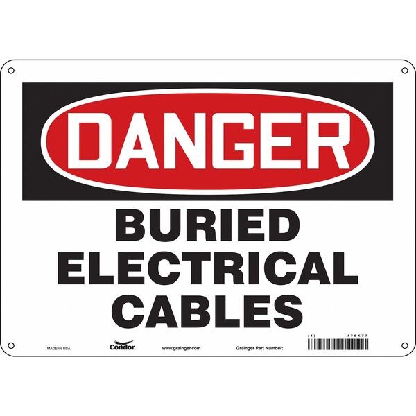 Safety Sign, Horizontal Rectangle, Number of Printed Sides 1, English, Sign Format Traditional OSHA, Sign Legend Buried Electrical Cables, Sign Legend Background Color White, Sign Legend Style Text