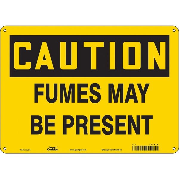 Safety Sign, Horizontal Rectangle, Number of Printed Sides 1, English, Sign Format Traditional OSHA, Sign Legend Fumes May Be Present, Sign Legend Background Color Yellow, Sign Legend Style Text