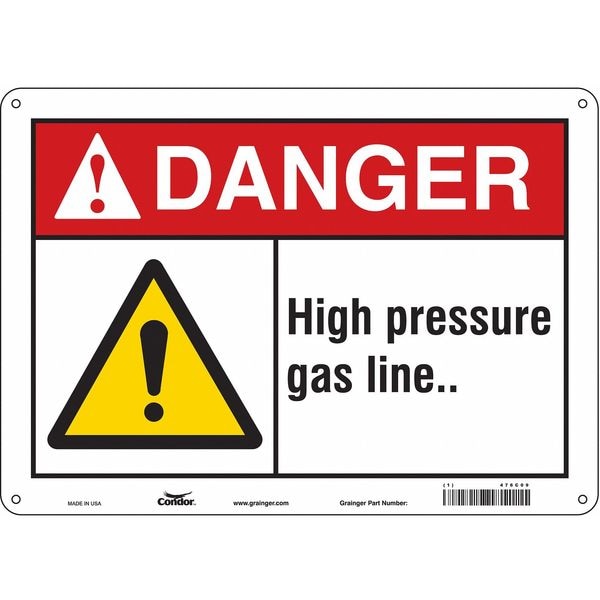 Safety Sign, Horizontal Rectangle, Number of Printed Sides 1, English, Sign Format ANSI/OSHA Format, Sign Legend High Pressure Gas Line., Sign Legend Background Color White, Sign Legend Style Symbol and Text