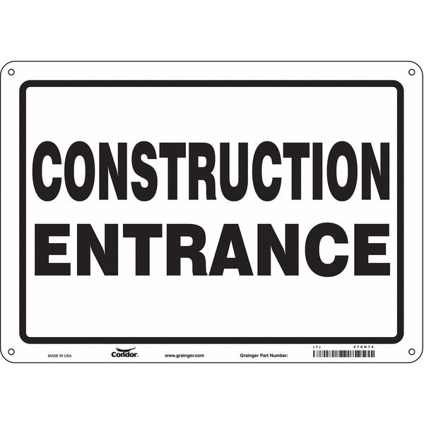 Safety Sign, Horizontal Rectangle, Number of Printed Sides 1, English, Sign Format Other Format, Sign Legend Construction Entrance, Sign Legend Background Color White, Sign Legend Style Text