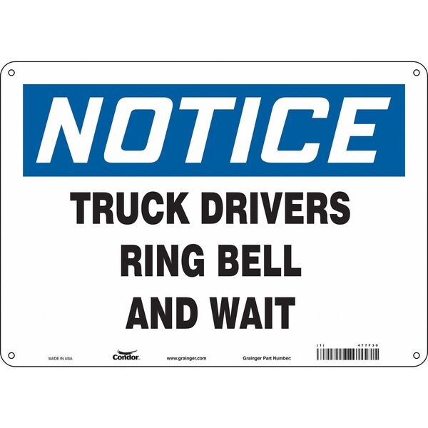 Safety Sign, Horizontal Rectangle, Number of Printed Sides 1, English, Sign Format Traditional OSHA, Sign Legend Truck Drivers Ring Bell And Wait, Sign Legend Background Color White, Sign Legend Style Text