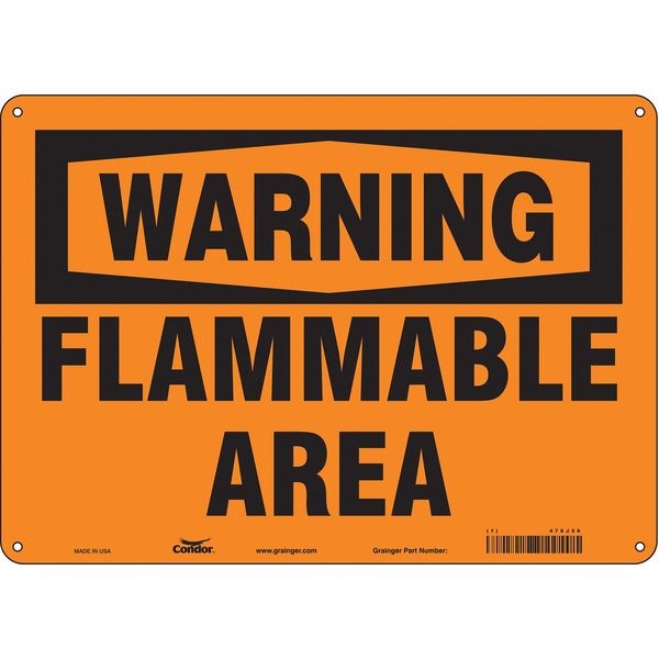 Safety Sign, Horizontal Rectangle, Number of Printed Sides 1, English, Sign Format Traditional OSHA, Sign Legend Flammable Area, Sign Legend Background Color Orange, Sign Legend Style Text
