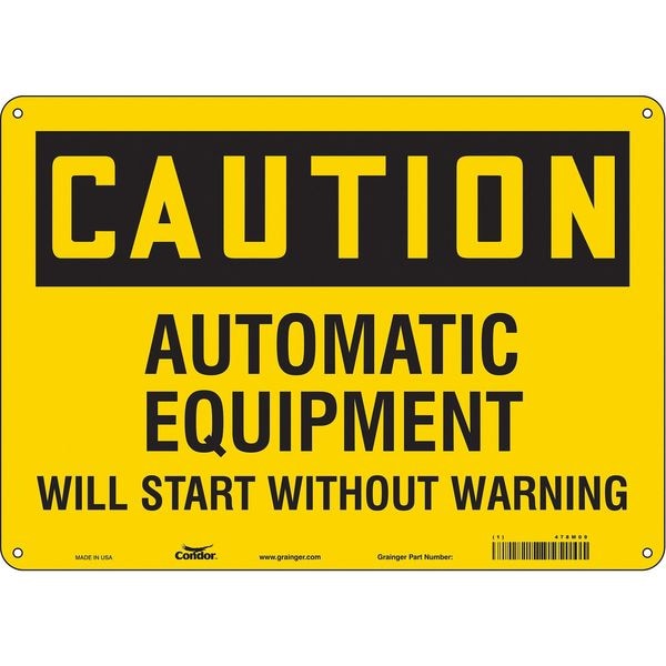 Safety Sign, Horizontal Rectangle, Number of Printed Sides 1, English, Sign Format Traditional OSHA, Sign Legend Automatic Equipment Will Start Without Warning, Sign Legend Background Color Yellow, Sign Legend Style Text