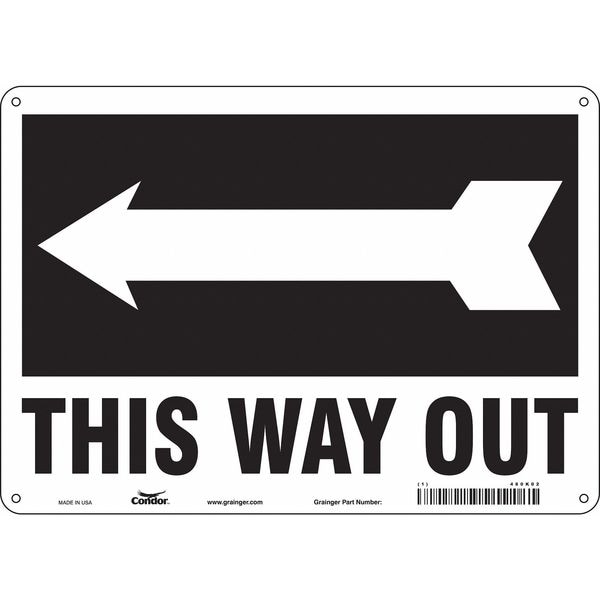 Safety Sign, Horizontal Rectangle, Number of Printed Sides 1, English, Sign Legend This Way Out (Arrow), Sign Legend Background Color Black, White, Sign Legend Style Symbol and Text