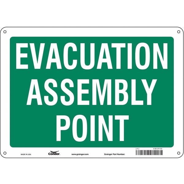 Safety Sign, Horizontal Rectangle, Number of Printed Sides 1, English, Sign Legend Evacuation Assembly Point, Sign Legend Background Color Green, Sign Legend Style Text