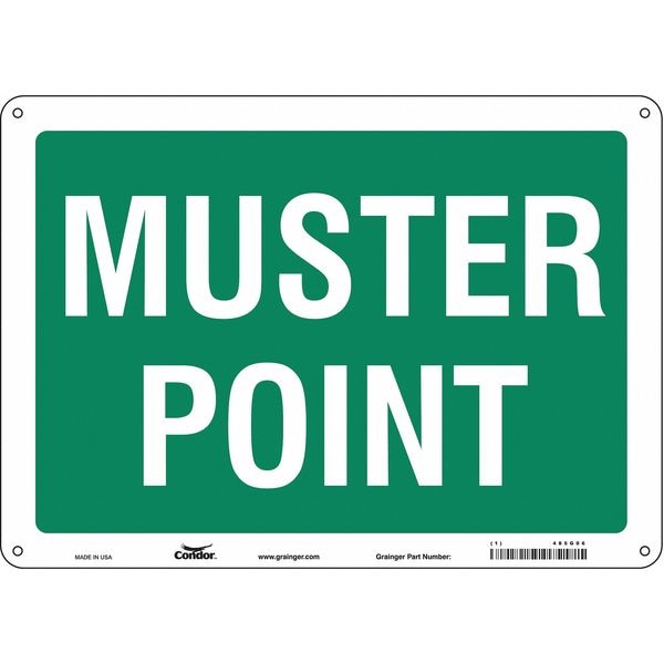 Safety Sign, Horizontal Rectangle, Number of Printed Sides 1, English, Sign Legend Muster Point, Sign Legend Background Color Green, Sign Legend Style Text