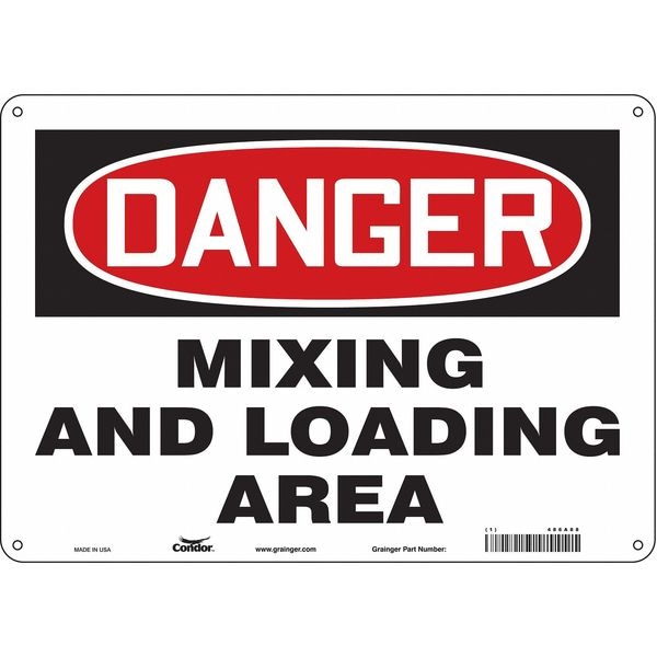 Safety Sign, Horizontal Rectangle, Number of Printed Sides 1, English, Sign Format Traditional OSHA, Sign Legend Mixing And Loading Area, Sign Legend Background Color White, Sign Legend Style Text