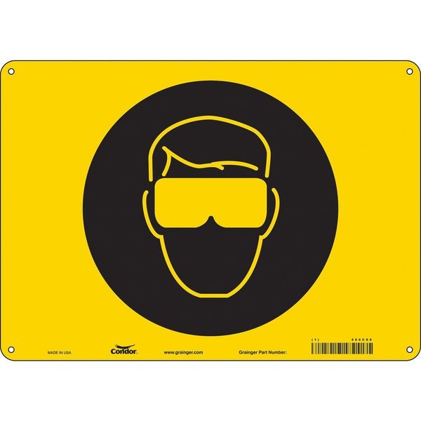 Safety Sign, Horizontal Rectangle, Number of Printed Sides 1, English, Sign Format Other Format, Sign Legend Eye Protection Symbol, Sign Legend Background Color Yellow, Sign Legend Style Symbol