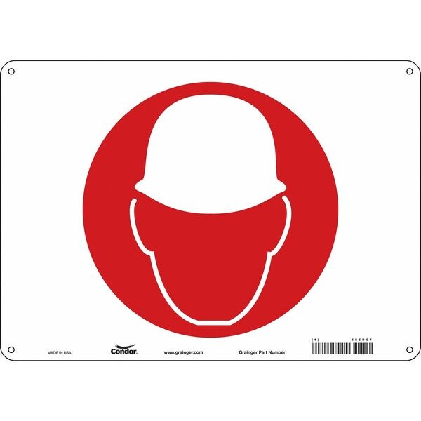 Safety Sign, Horizontal Rectangle, Number of Printed Sides 1, English, Sign Format Other Format, Sign Legend Hard Hat, Sign Legend Background Color White, Sign Legend Style Symbol