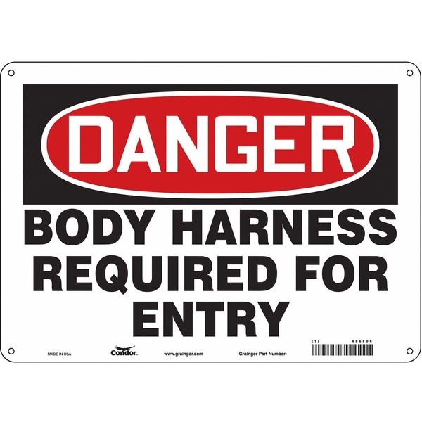 Safety Sign, Horizontal Rectangle, Number of Printed Sides 1, English, Sign Format Traditional OSHA, Sign Legend Body Harness Required For Entry, Sign Legend Background Color White, Sign Legend Style Text