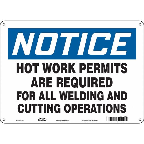 Safety Sign, Horizontal Rectangle, Number of Printed Sides 1, English, Sign Format Traditional OSHA, Sign Legend Hot Work Permits Are Required For All Welding And Cutting Operations, Sign Legend Background Color White, Sign Legend Style Text