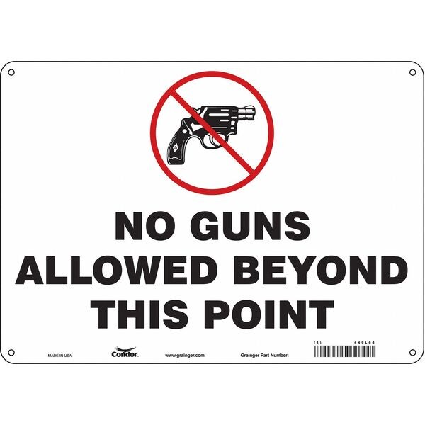 Safety Sign, Horizontal Rectangle, Number of Printed Sides 1, English, Sign Format Other Format, Sign Legend No Guns Allowed Beyond This Point, Sign Legend Background Color White, Sign Legend Style Symbol and Text