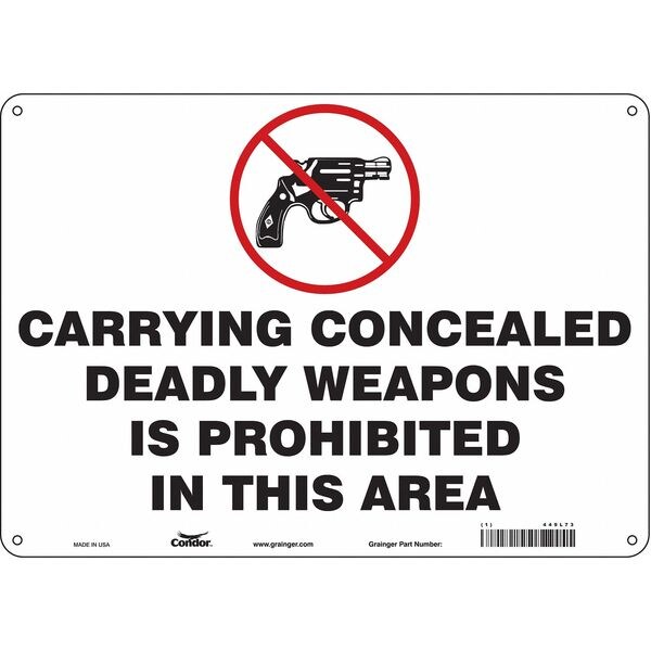 Safety Sign, Horizontal Rectangle, Number of Printed Sides 1, English, Sign Format Other Format, Sign Legend Carrying Concealed Deadly Weapons Is Prohibited In This Area, Sign Legend Background Color White, Sign Legend Style Symbol and Text