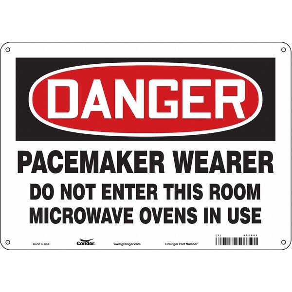 Safety Sign, Horizontal Rectangle, Number of Printed Sides 1, English, Sign Format Traditional OSHA, Sign Legend Pacemaker Wearer Do Not Enter This Room Microwave Ovens In Use, Sign Legend Background Color White, Sign Legend Style Text