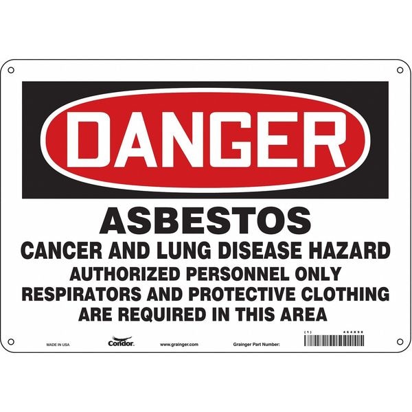 Safety Sign, Horizontal Rectangle, Number of Printed Sides 1, English, Sign Format Traditional OSHA, Sign Legend Asbestos Cancer And Lung Disease Hazard Authorized Personnel Only Respirators And Protective Clothing Are Required In This Area, Sign Legend Background Color White, Sign Legend Style Text