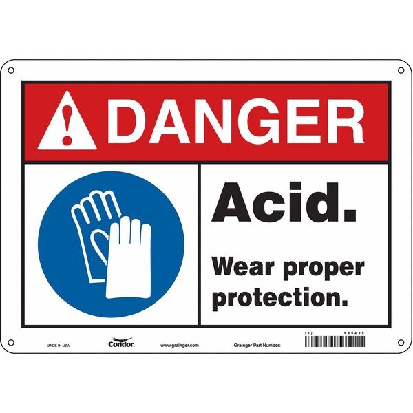 Safety Sign, Horizontal Rectangle, Number of Printed Sides 1, English, Sign Format ANSI/OSHA Format, Sign Legend Acid. Wear Proper Protection., Sign Legend Background Color White, Sign Legend Style Symbol and Text