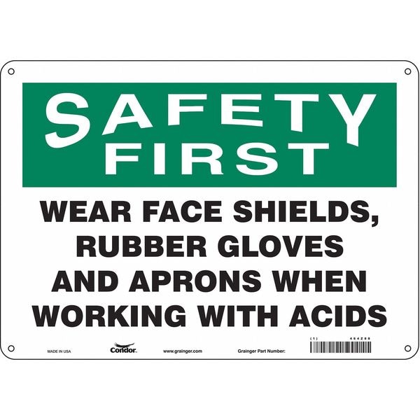 Safety Sign, Horizontal Rectangle, Number of Printed Sides 1, English, Sign Format Traditional OSHA, Sign Legend Wear Face Shields, Rubber Gloves And Aprons When Working With Acids, Sign Legend Background Color White, Sign Legend Style Text