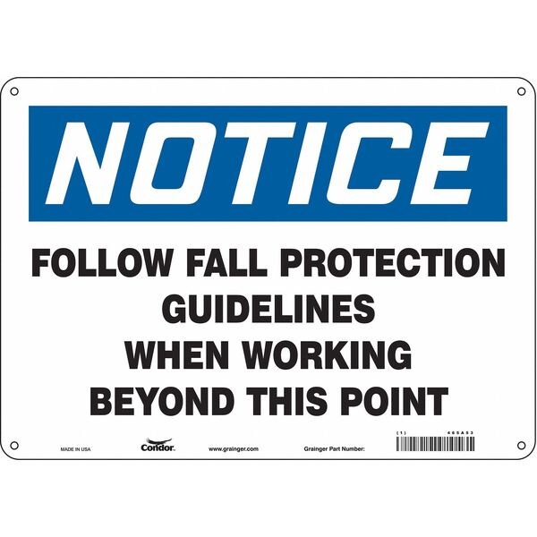 Safety Sign, Horizontal Rectangle, Number of Printed Sides 1, English, Sign Format Traditional OSHA, Sign Legend Follow Fall Protection Guidelines When Working Beyond This Point, Sign Legend Background Color White, Sign Legend Style Text