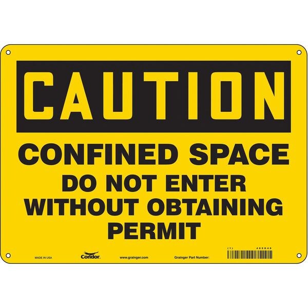 Safety Sign, Horizontal Rectangle, Number of Printed Sides 1, English, Sign Format Traditional OSHA, Sign Legend Confined Space Do Not Enter Without Obtaining Permit, Sign Legend Background Color Yellow, Sign Legend Style Text