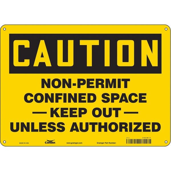 Safety Sign, Horizontal Rectangle, Number of Printed Sides 1, English, Sign Format Traditional OSHA, Sign Legend Non-Permit Confined Space -Keep Out- Unless Authorized, Sign Legend Background Color Yellow, Sign Legend Style Text
