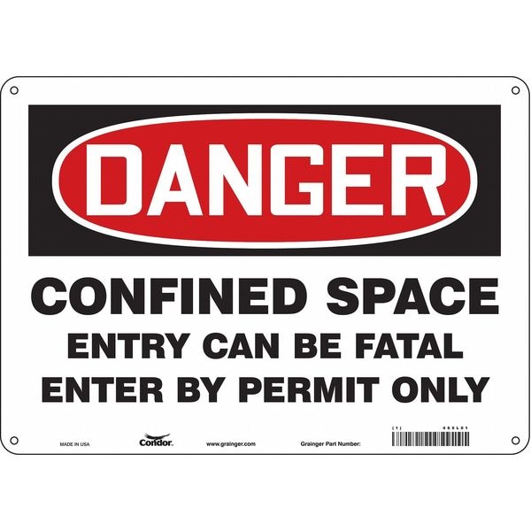 Safety Sign, Horizontal Rectangle, Number of Printed Sides 1, English, Sign Format Traditional OSHA, Sign Legend Confined Space Entry Can Be Fatal Enter By Permit Only, Sign Legend Background Color White, Sign Legend Style Text