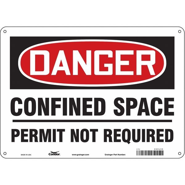 Safety Sign, Horizontal Rectangle, Number of Printed Sides 1, English, Sign Format Traditional OSHA, Sign Legend Confined Space Permit Not Required, Sign Legend Background Color White, Sign Legend Style Text