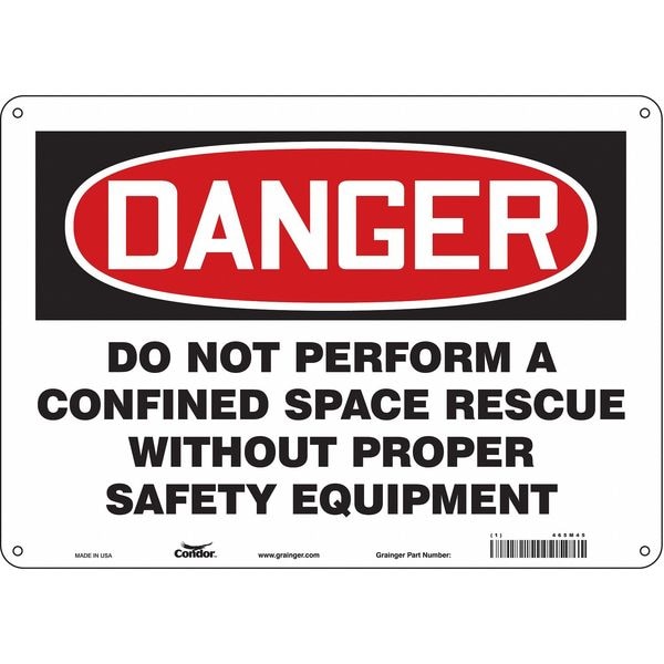 Safety Sign, Horizontal Rectangle, Number of Printed Sides 1, English, Sign Format Traditional OSHA, Sign Legend Do Not Perform A Confined Space Rescue Without Proper Safety Equipment, Sign Legend Background Color White, Sign Legend Style Text