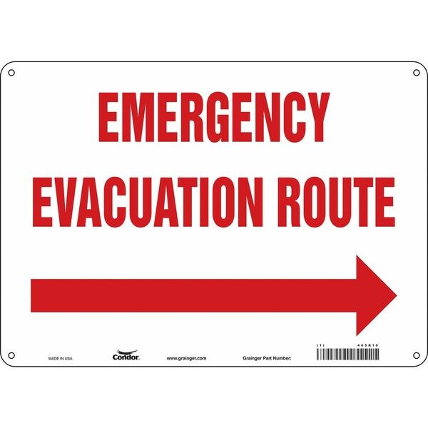 Safety Sign, Horizontal Rectangle, Number of Printed Sides 1, English, Sign Legend Emergency Evacuation Route, Sign Legend Background Color White, Sign Legend Style Symbol and Text