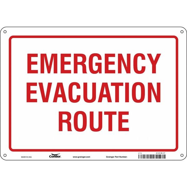 Safety Sign, Horizontal Rectangle, Number of Printed Sides 1, English, Sign Legend Emergency Evacuation Route, Sign Legend Background Color White, Sign Legend Style Text