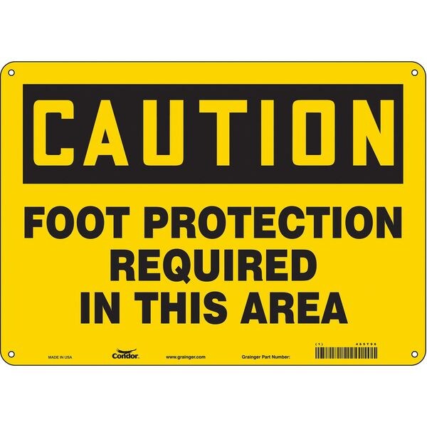 Safety Sign, Horizontal Rectangle, Number of Printed Sides 1, English, Sign Format Traditional OSHA, Sign Legend Foot Protection Required In This Area, Sign Legend Background Color Yellow, Sign Legend Style Text