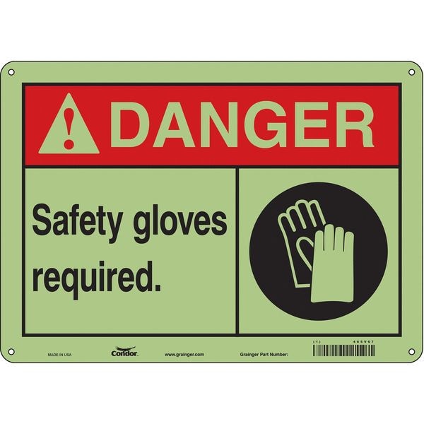 Safety Sign, Horizontal Rectangle, Number of Printed Sides 1, English, Sign Format ANSI/OSHA Format, Sign Legend Safety Gloves Required., Sign Legend Background Color White, Sign Legend Style Symbol and Text