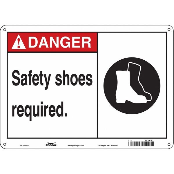 Safety Sign, Horizontal Rectangle, Number of Printed Sides 1, English, Sign Format ANSI/OSHA Format, Sign Legend Safety Shoes Required., Sign Legend Background Color White, Sign Legend Style Symbol and Text
