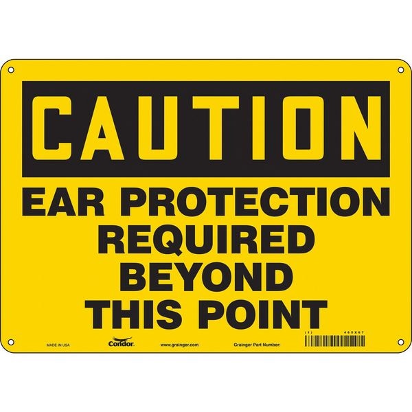 Safety Sign, Horizontal Rectangle, Number of Printed Sides 1, English, Sign Format Traditional OSHA, Sign Legend Ear Protection Required Beyond This Point, Sign Legend Background Color Yellow, Sign Legend Style Text